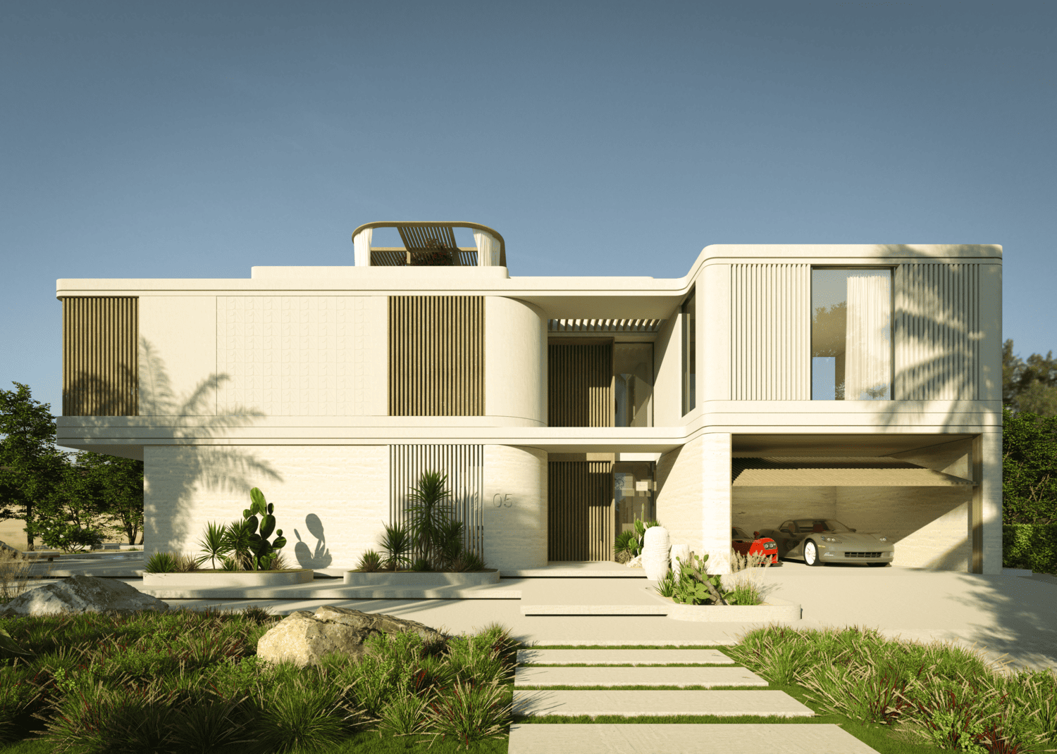 Вдохновленные окружающей природой, эти эксклюзивные виллы отличаются плавными изгибами, гладкими линиями и облицовкой из натурального камня, органично вписываясь в ландшафт. Каждый дом предлагает открытые жилые и обеденные зоны с гибкой планировкой, включая дополнительные гостевые комнаты. Спальни имеют собственные балконы, обеспечивая уединенное место для отдыха на свежем воздухе.